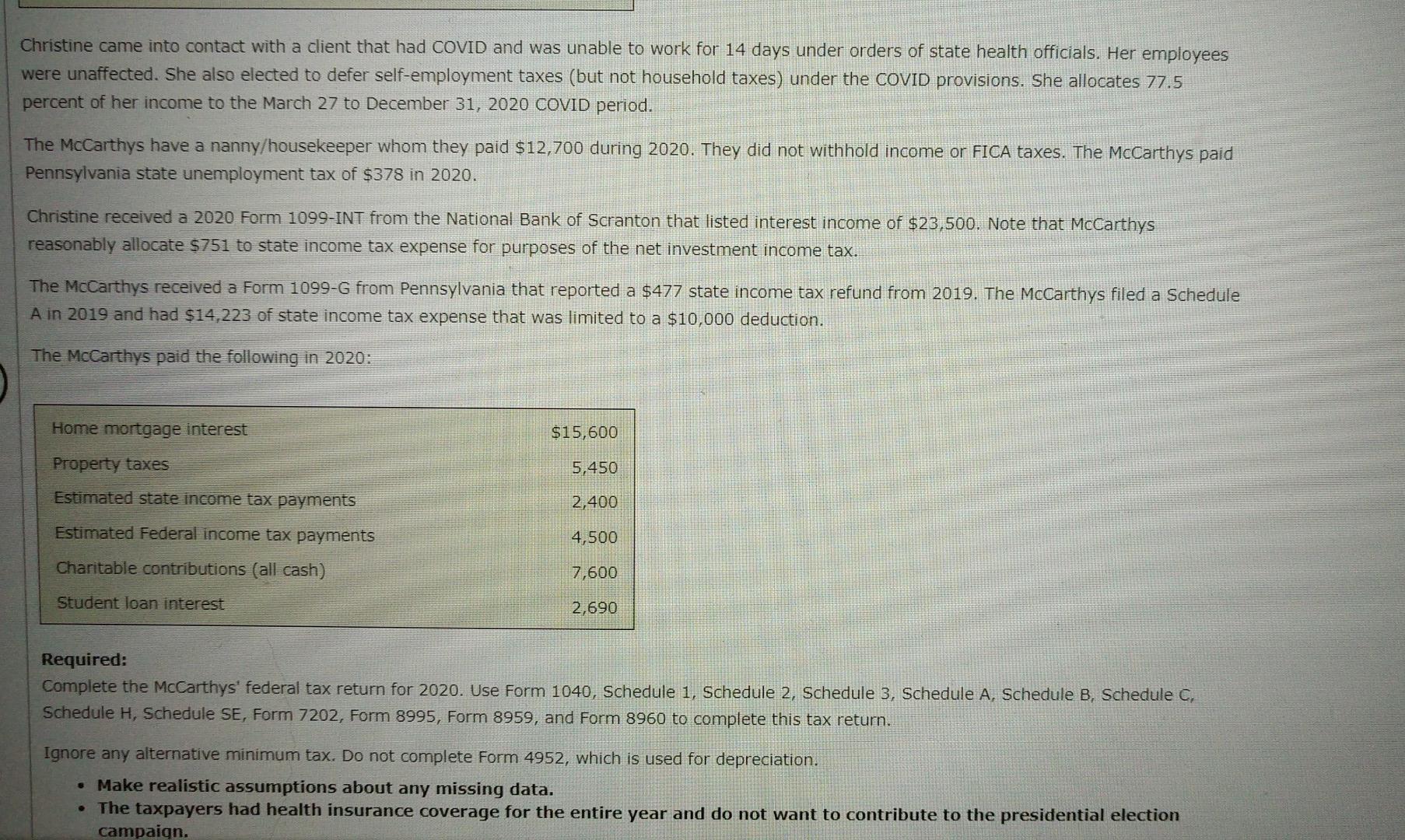 Solved Comprehensive Problem 6 1a Richard Mccarthy Born Chegg Com